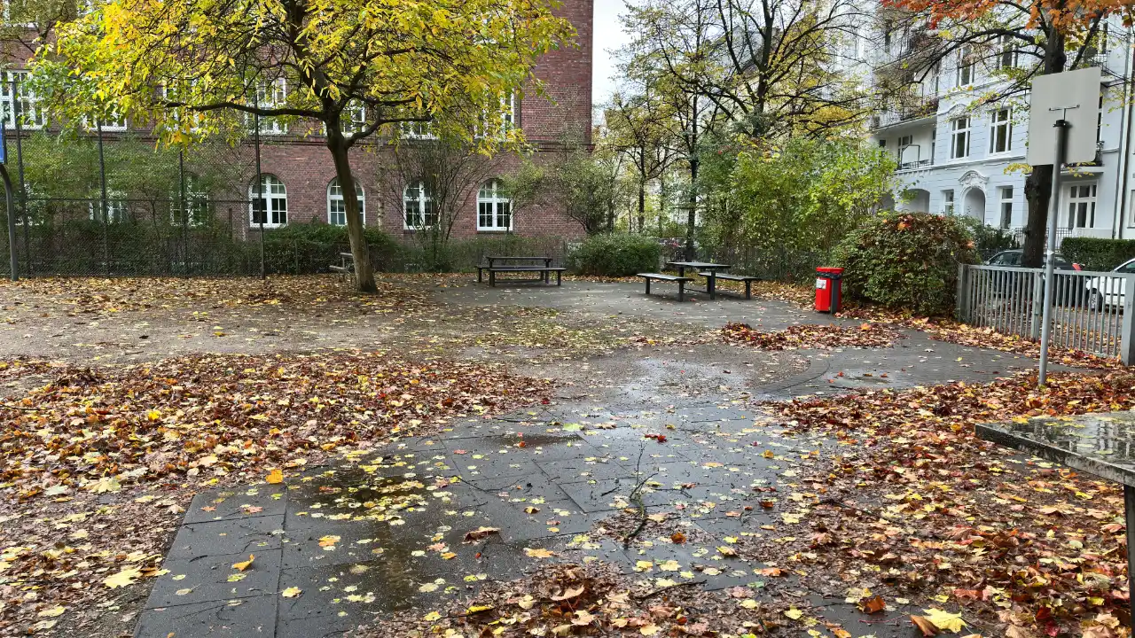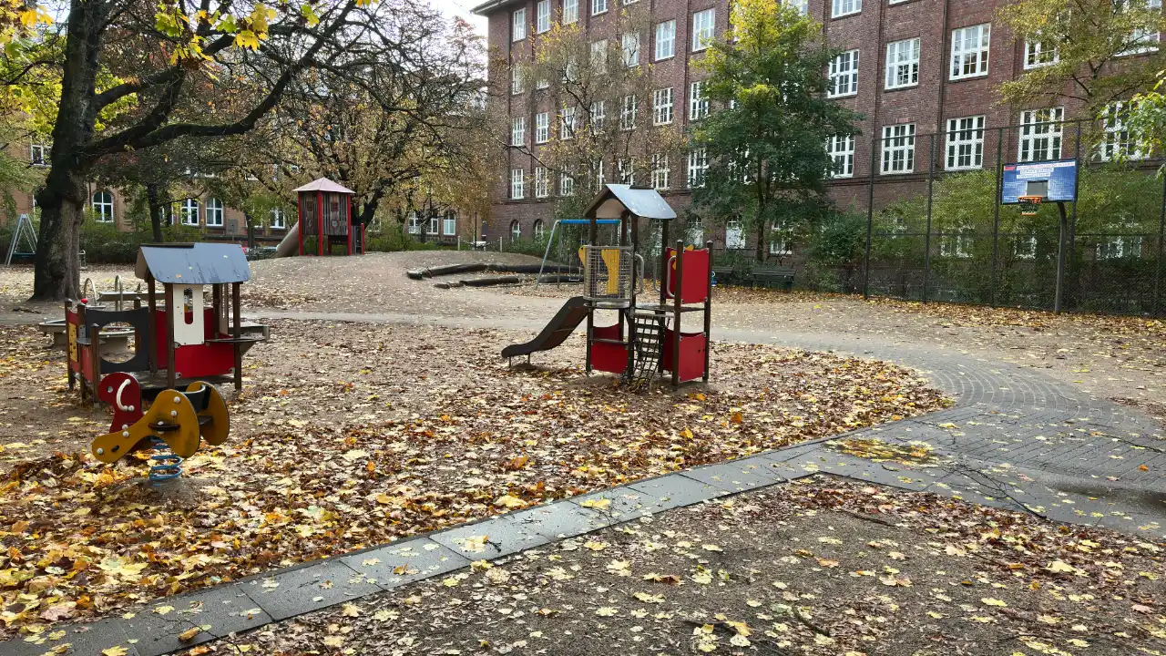 Der Spielplatz Averhoffstraße liegt zwischen dem Heideweg und dem Schrötteringksweg und grenzt an das Gebäude Schrötteringksweg 16.